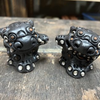 ミニ面獅子(対) 赤土/黒
